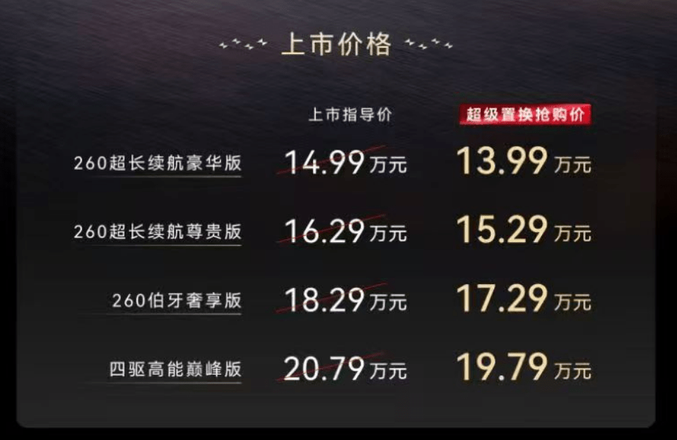 动力方面,新车搭载鲲鹏超能CDM 6.0,发动机热效率超过45.79%,新车搭载1.5T插混动力,发动机最大功率115kW,配备磷酸铁锂电池。采用无级超级电混DHT Pro系统,驱动电机最大功率为160kW,峰值扭矩310N·m。