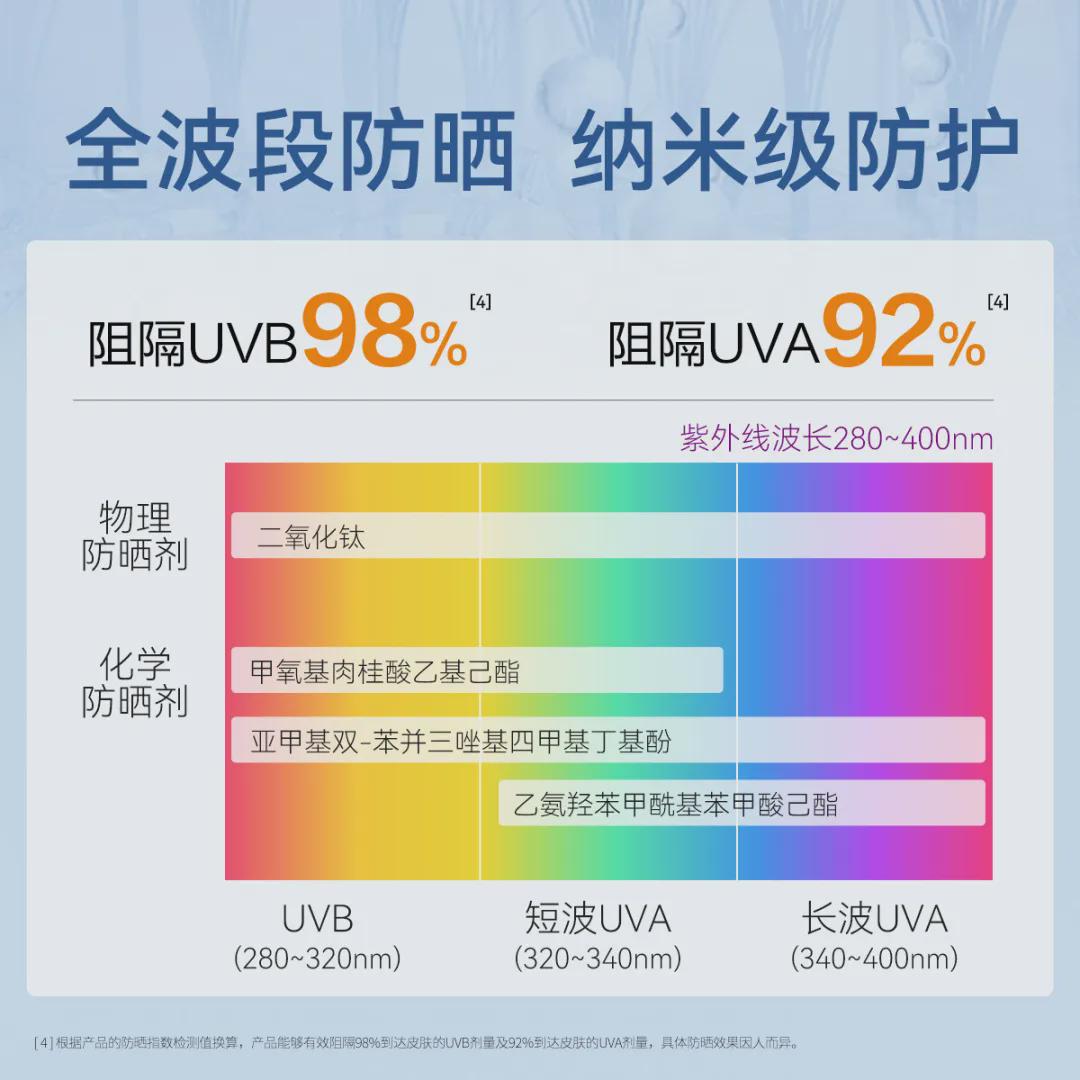 用粒径细小的二氧化钛,确保物理防晒剂能够均匀分布,防晒力度非常在线。