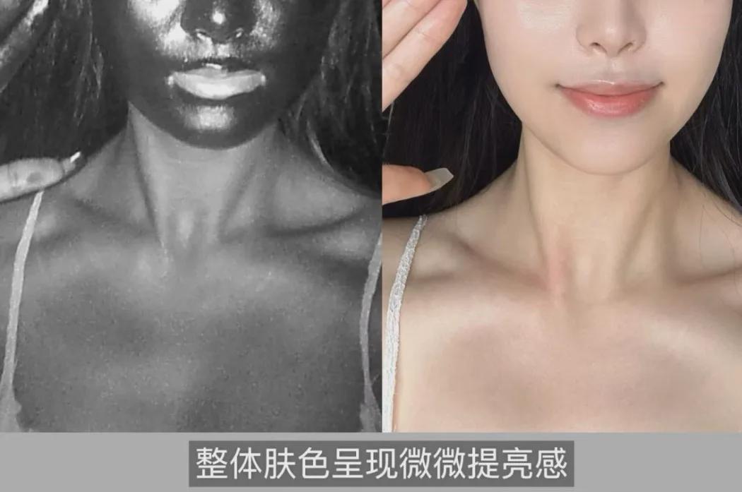 瞅瞅这个上脸的效果,自然提亮肤色,还能遮盖住脸上的色斑和黑眼圈,省去了再涂遮瑕膏、粉底液的麻烦。