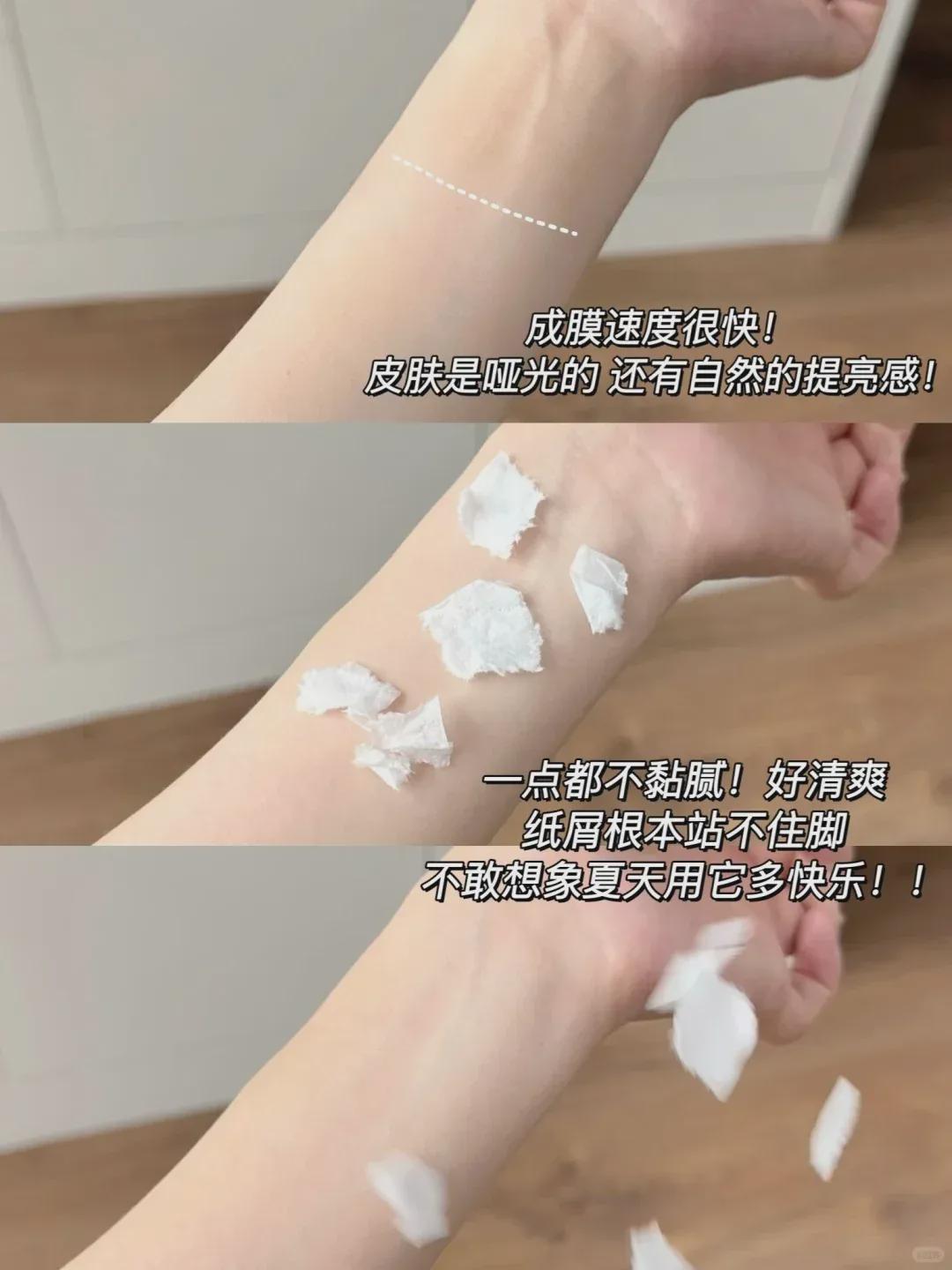 不敢想象夏天用它多快乐!!而且成膜速度很快!抹开皮肤是哑光的还有自然的提亮感!