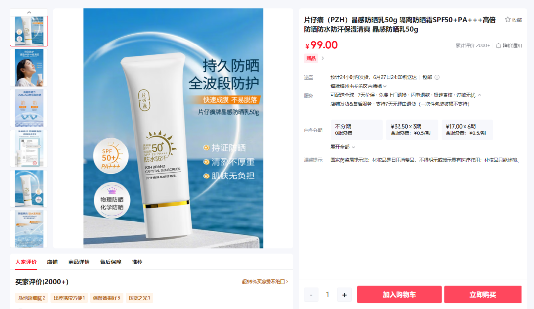 片仔癀晶感防晒乳速配发金融网