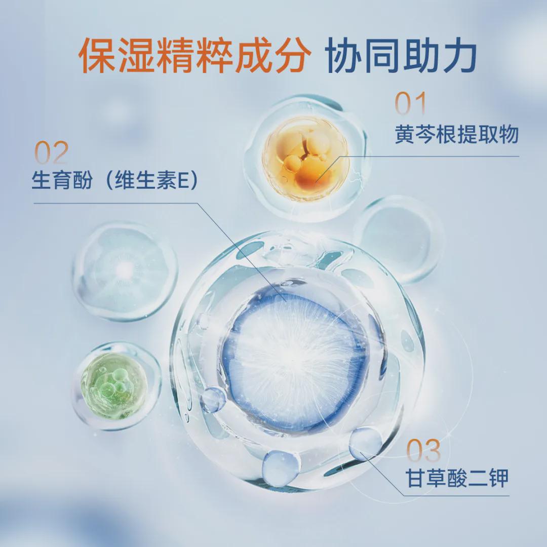 再加上甘草酸二钾、黄芩根提取物的养肤成分的助力。