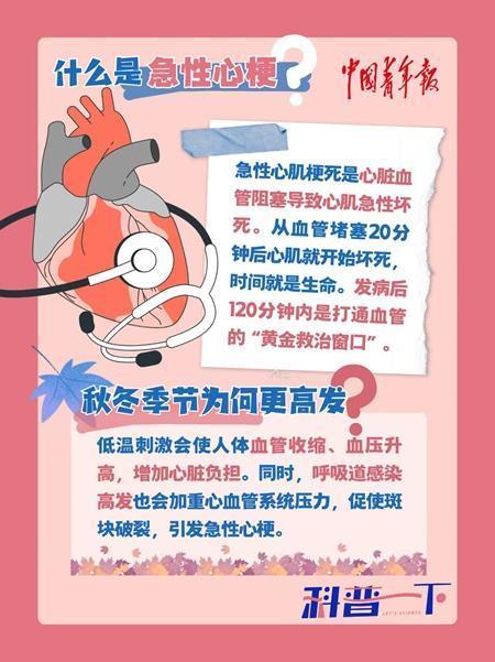 r秋冬季也是呼吸道疾病高发期,感冒、肺炎等感染性疾病会对心血管系统造成间接伤害。“炎症状态下,心脏血管的内皮功能变得不稳定,斑块破裂风险增加,急性心梗的风险也随之上升。”杨柳补充道。