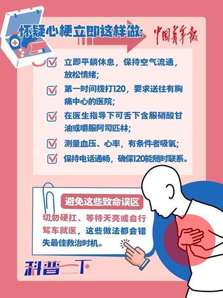 r医生建议,日常守护,可以从生活细节保护血管健康做起。如果突感心脏不适,在就医前可以这样自救:保持镇静,第一时间拨打120急救电话;在等待救援过程中,尽量躺下休息,降低心脏负荷;如有检测设备,可监测血压、脉搏和血氧,为医生提供参考;对于已确诊的患者,可尝试使用医生认可的药物缓解症状,但要注意用药安全;如突发意识障碍,在呼叫救援的同时,应立即展开有效的心肺复苏。