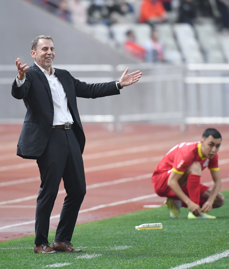 新华社照片,深圳(广东),2025年2月15日 ,中国队主教练久尔杰维奇(左)在场边指挥。\n 当日,在深圳举行的2025亚足联U20亚洲杯小组赛中,中国队5比2战胜吉尔吉斯斯坦队。\n 新华社记者 邓华 摄